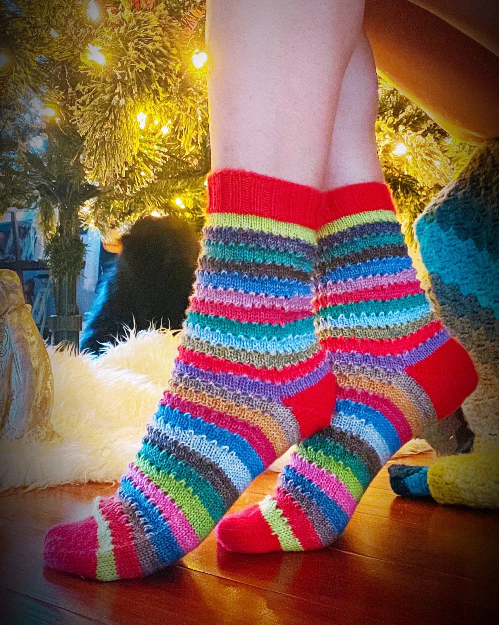 That said, I’m really bored of the FLK heel. I haven’t been able to fit them right lately, which I know is my fault because I’m too lazy to measure things properly, but it’s also not as durable as your standard square heel and turn. It’s perfect for self-striping yarn, though, because it doesn’t disrupt the pattern. And yet…
